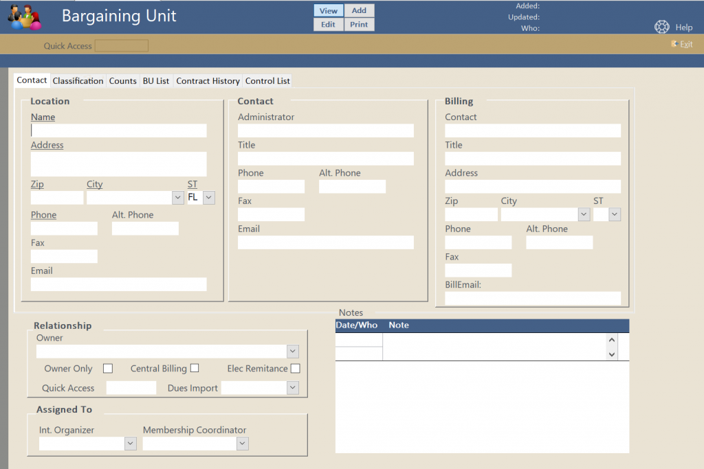 Union Tracker supports a hierarchy so you can group your units such as State, County, Entity, and department.  Reporting can then roll up the numbers.  In addition you can classify the units with addition tags that are used in reporting.